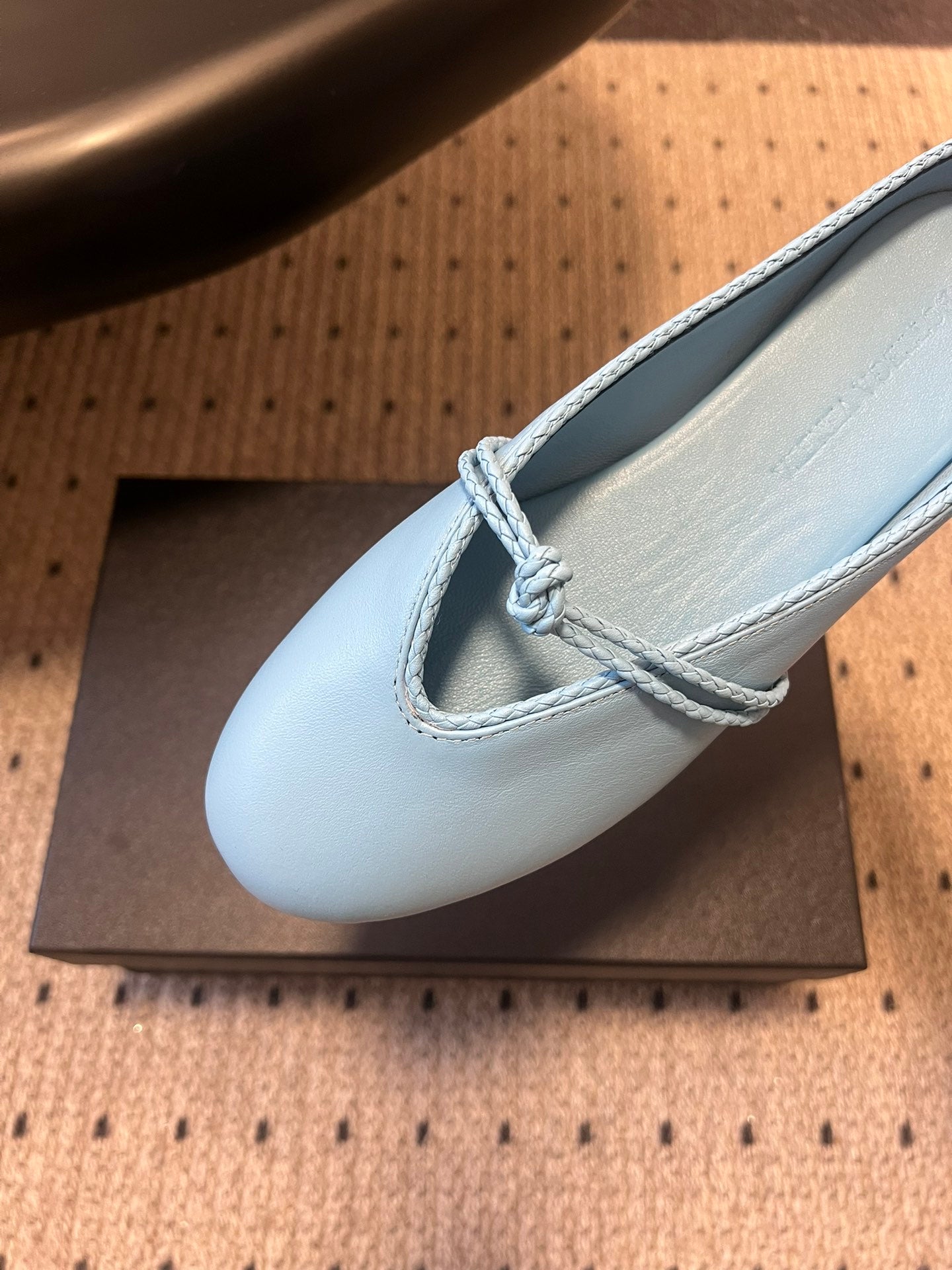 BOTTEGA VENETA 26S FLAT MULES IN BLUE LAMBSKIN