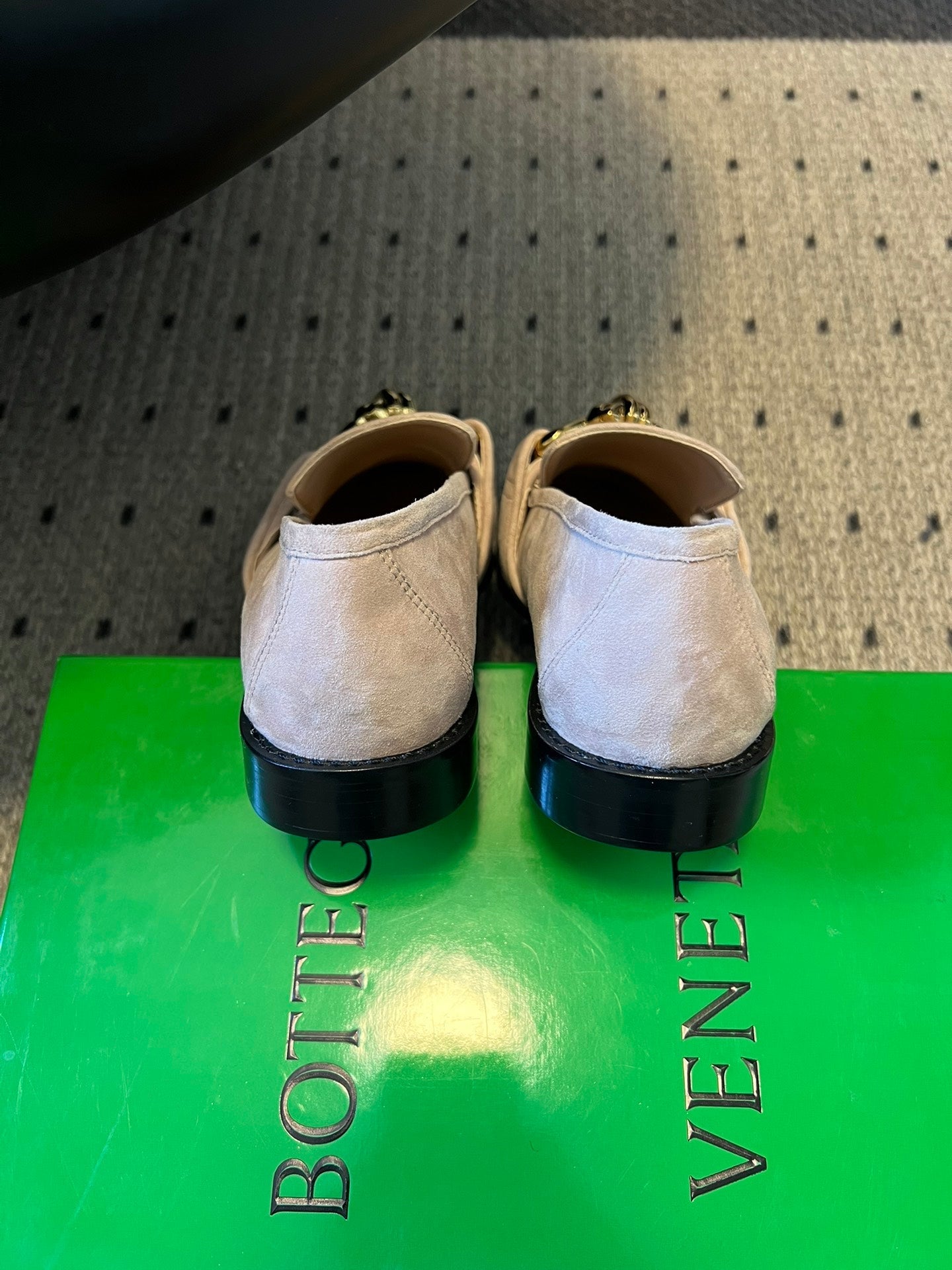 BOTTEGA VENETA 26S LOAFERS IN LIGHT BEIGE SUEDE WITH GOLD HARDWARE