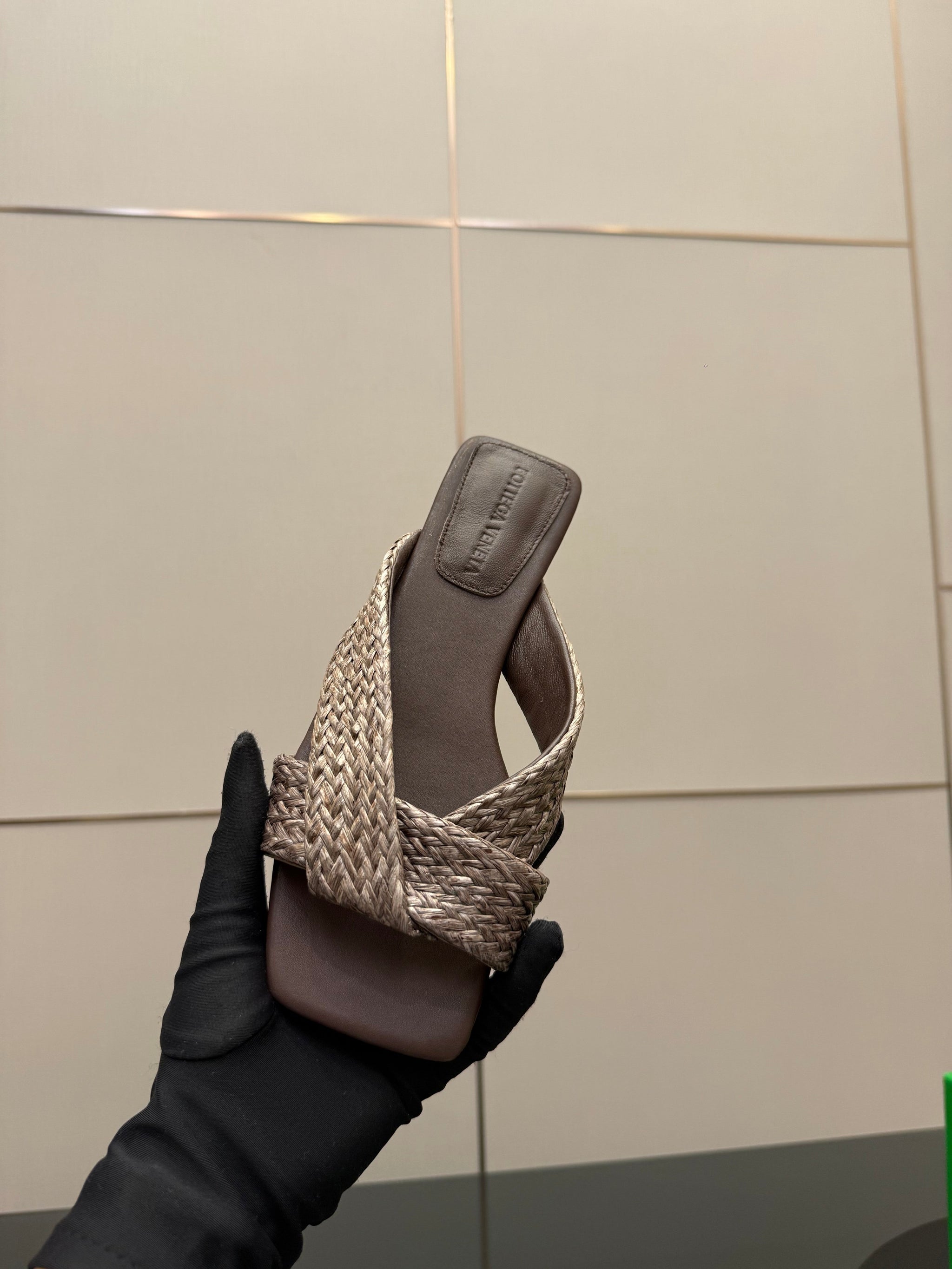 BOTTEGA VENETA 26S SANDALS IN DARK BROWN CALFSKIN AND RAFFIA
