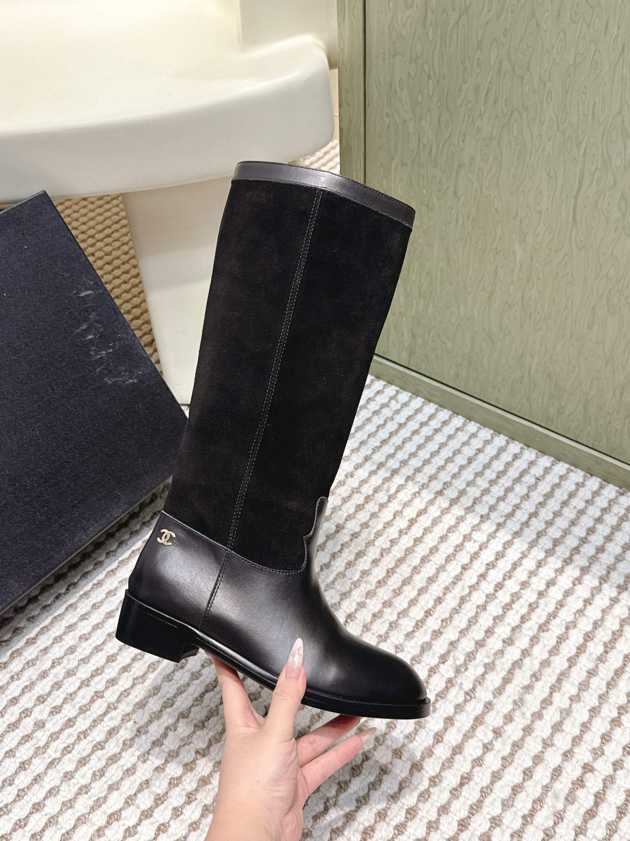 CHANEL 25S KNEE-HIGH BOOTS IN BLACK SUEDE AND CALFSKIN