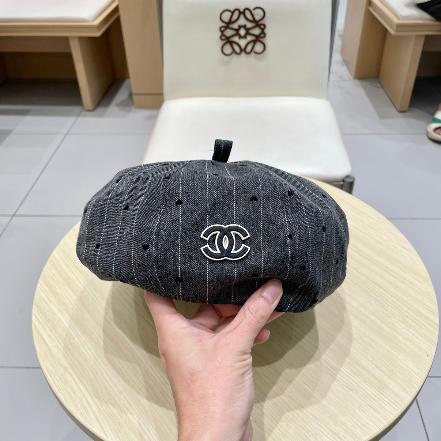 BERET HAT POLKA DOT DARK GRAY 672672