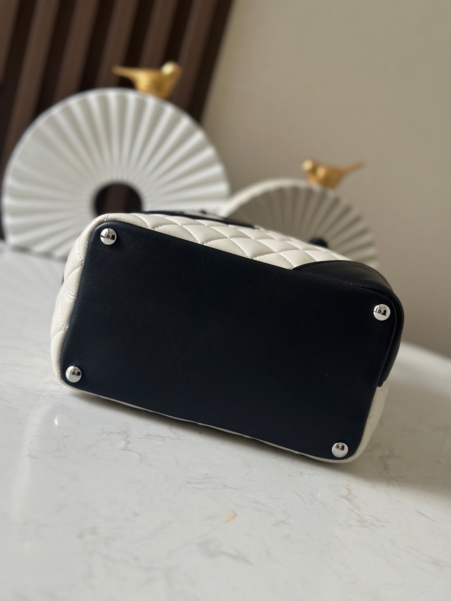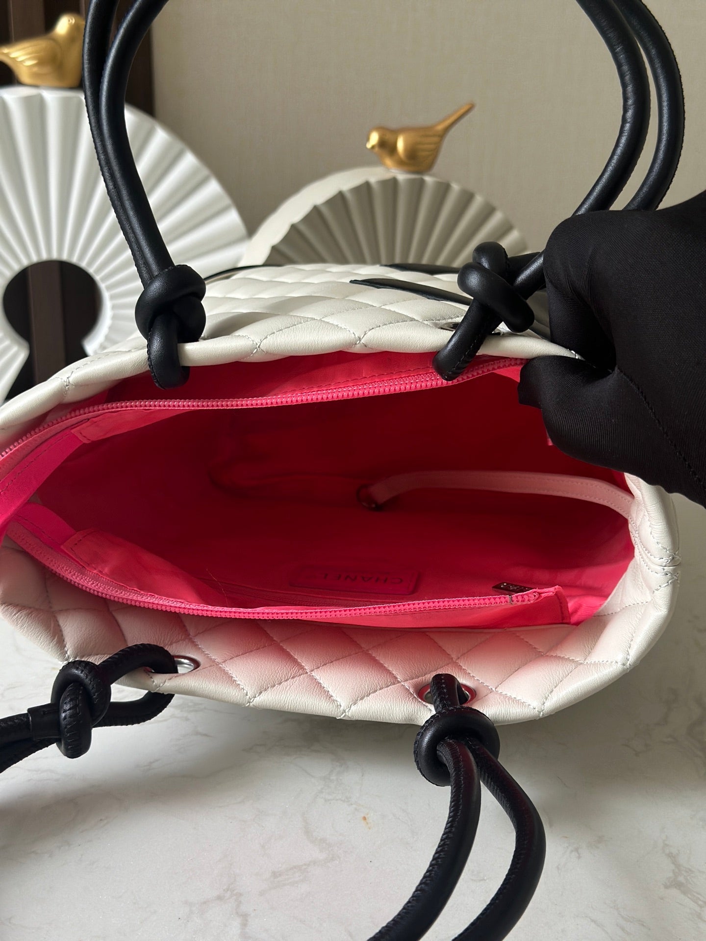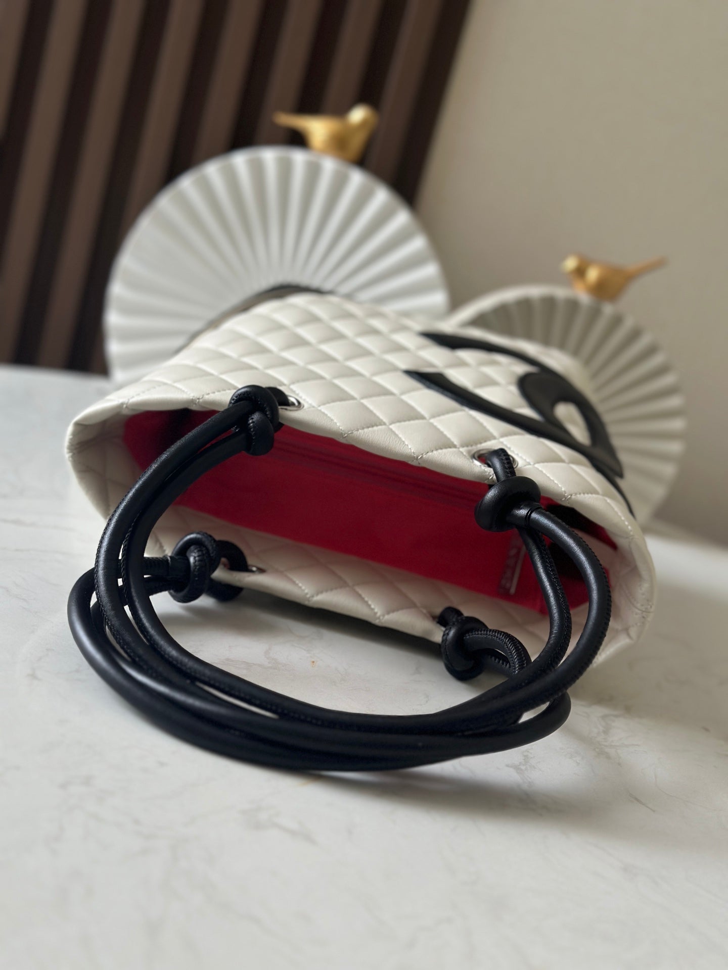CHANEL 25S CAMBON LIGNE TOTE BAG 24 IN WHITE MIX BLACK CALFSKIN