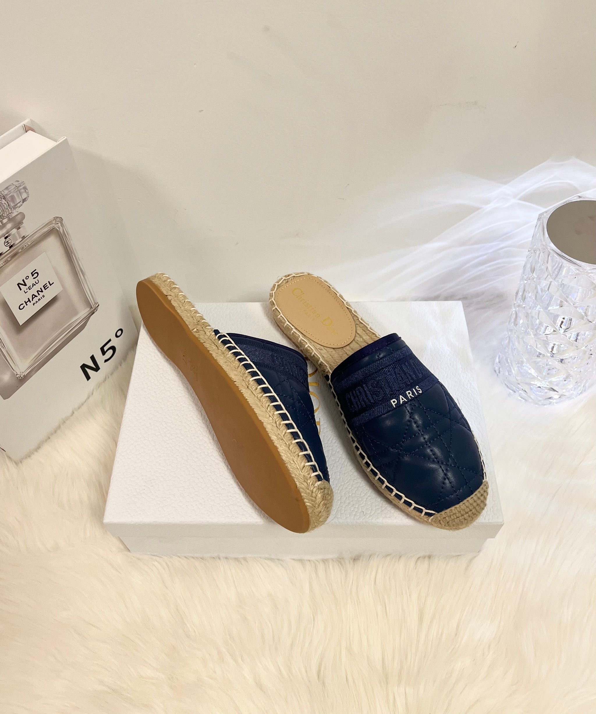 GRANVILLE ESPADRILLE MULE NAVY BLUE QUILTED CANNAGE CALFSKIN
