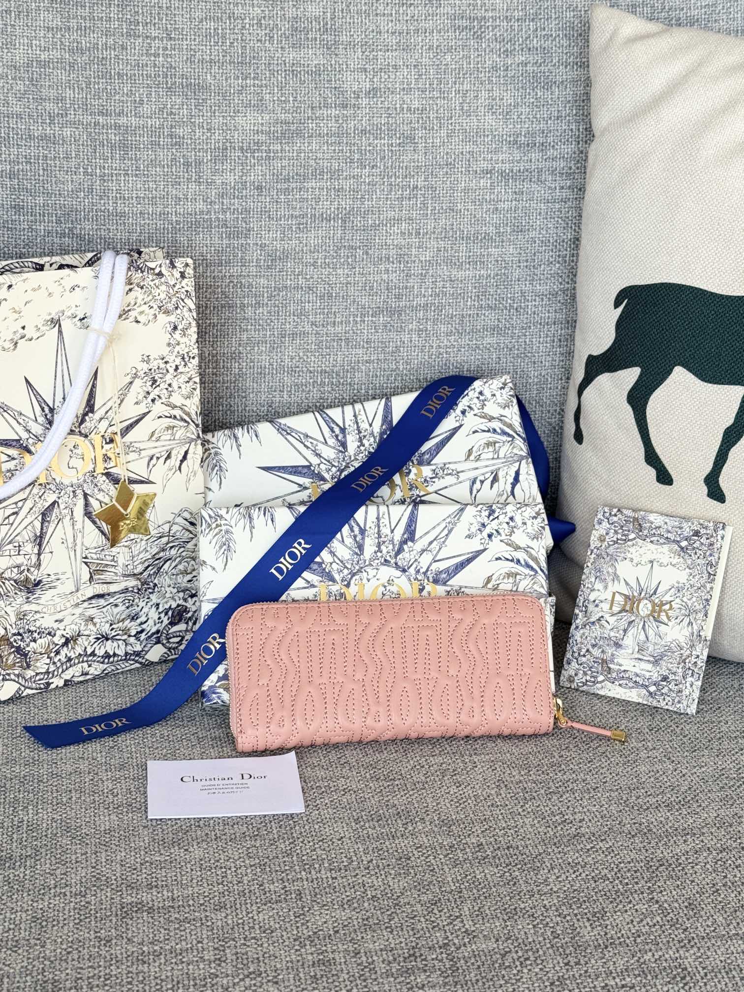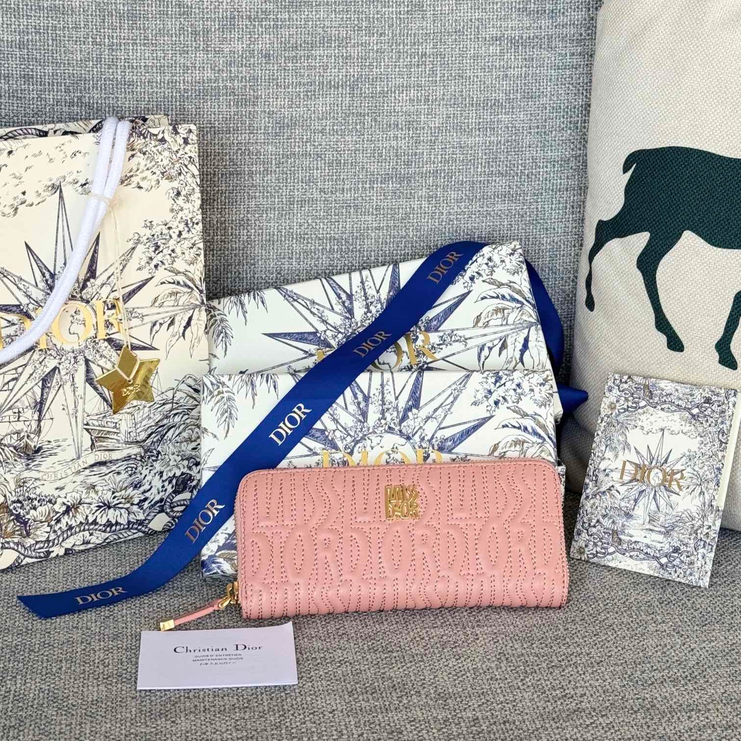 VERTICAL LONG ZIP WALLET 20 IN BABY PINK QUILTED ALLOVER CALFSKIN