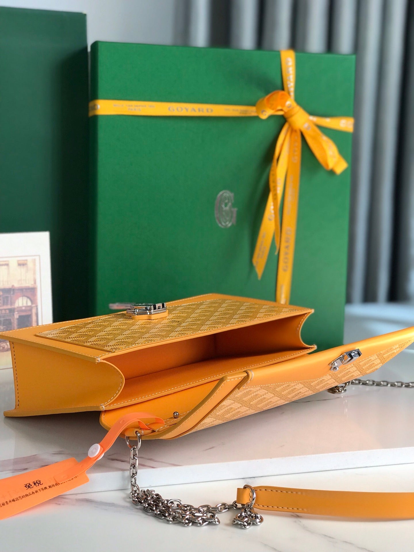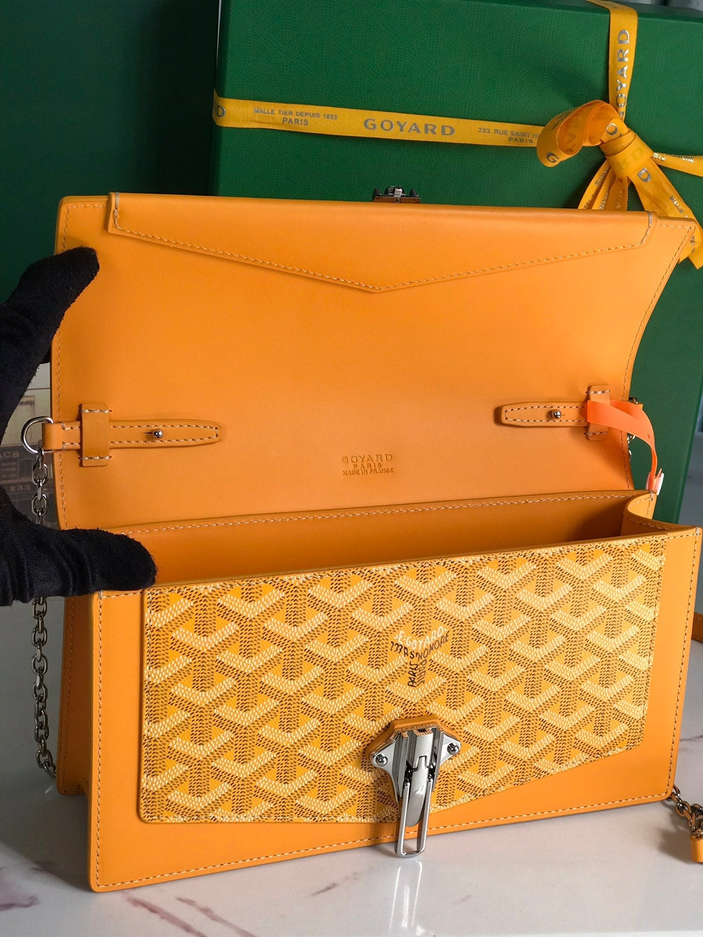 DUCHESSE MARIE-CAROLINE BAG 25 IN YELLOW GOYARDINE CANVAS AND SMOOTH CALFSKIN