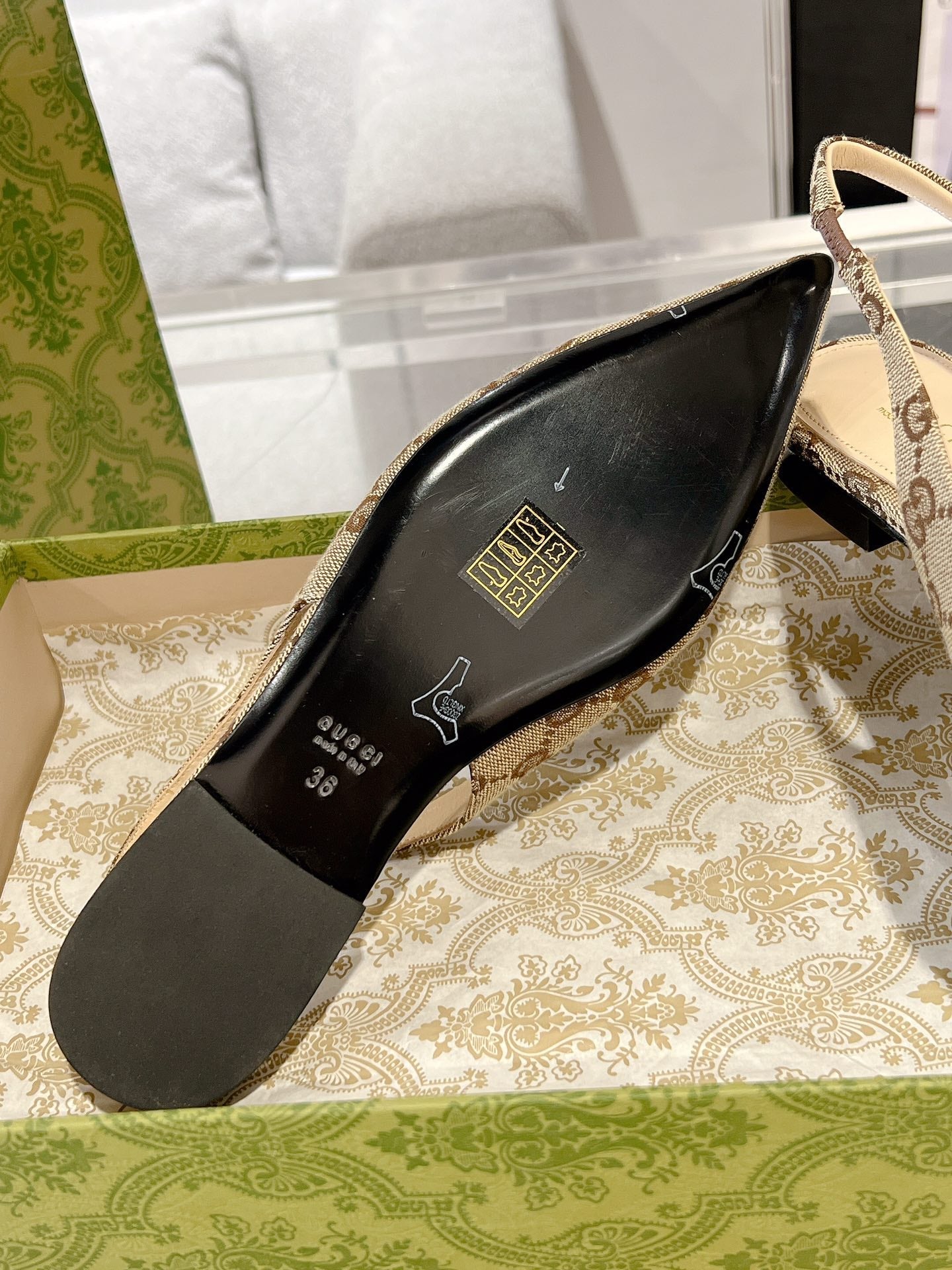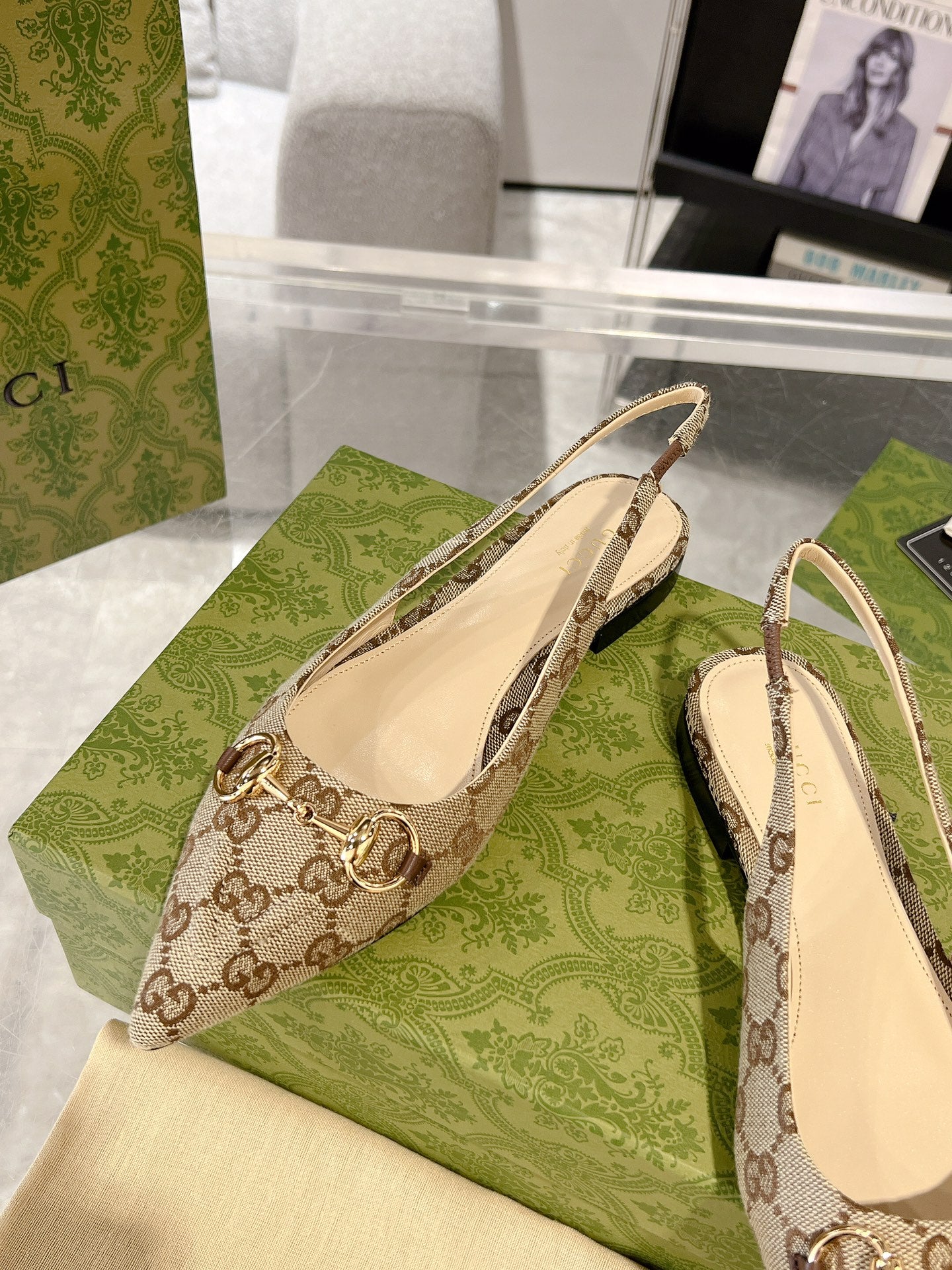 GG HORSEBIT SLINGBACK BALLET FLAT TAN BEIGE CANVAS