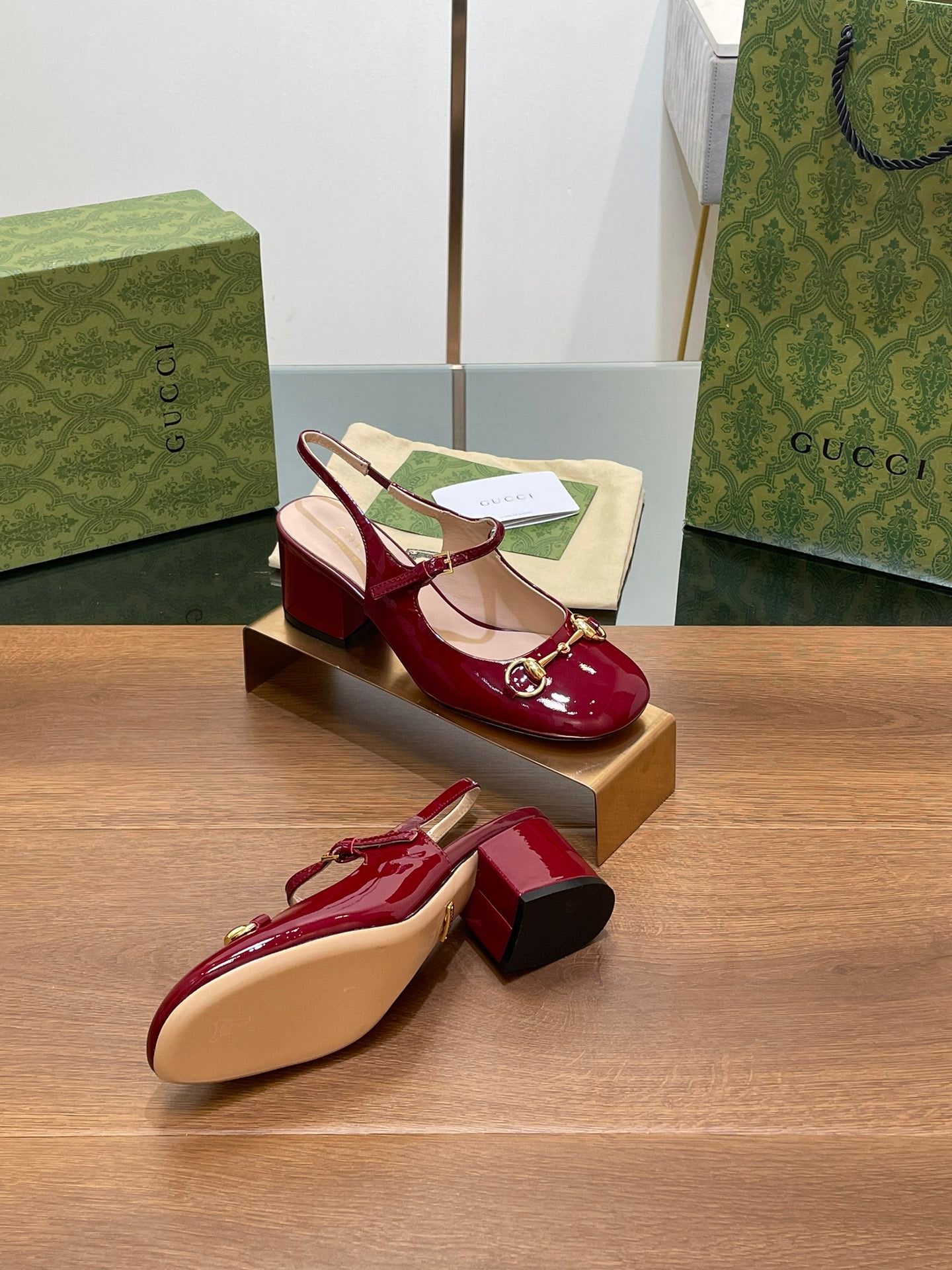 GG HORSEBIT PUMP SCARLET LAMBSKIN