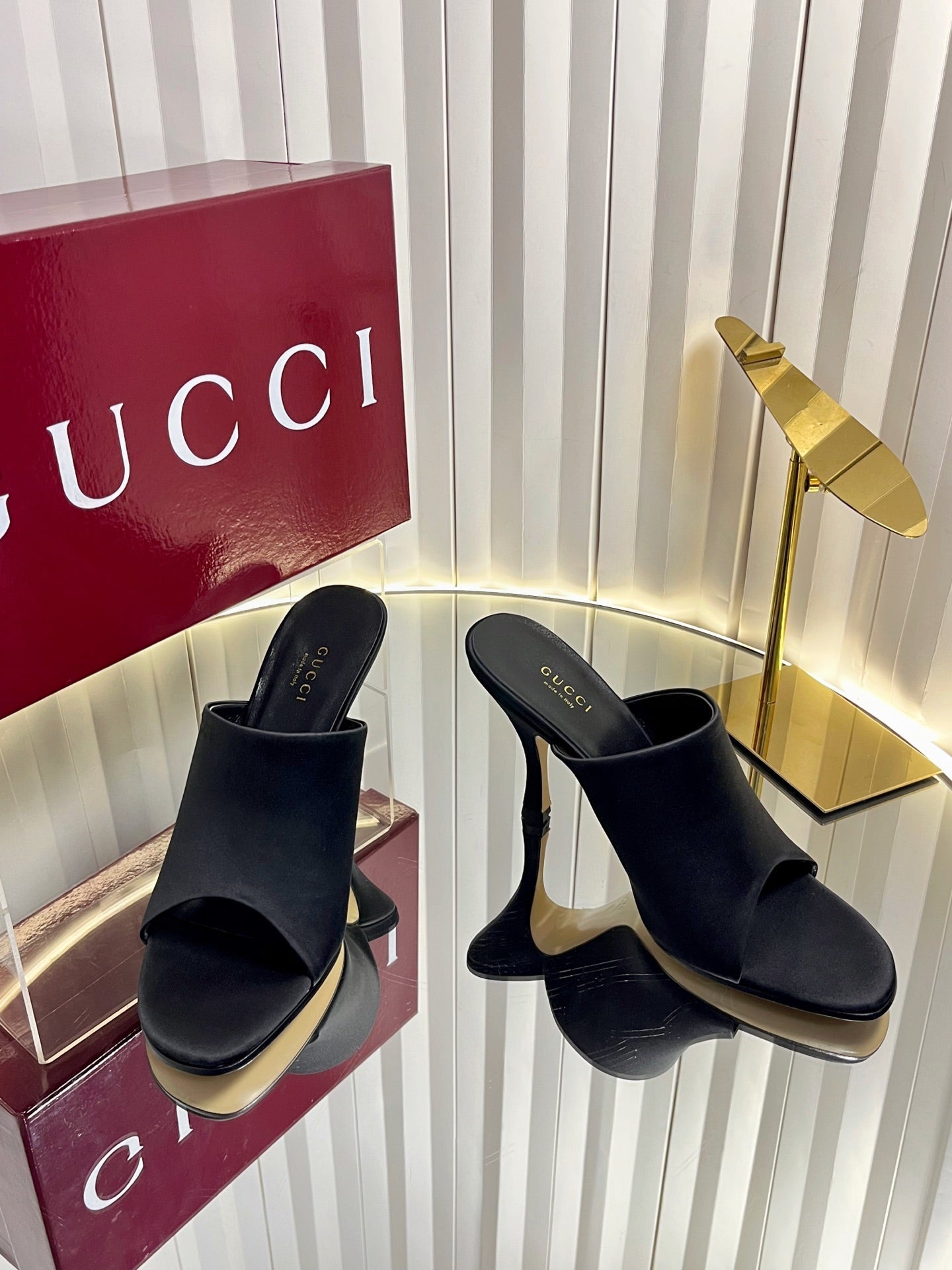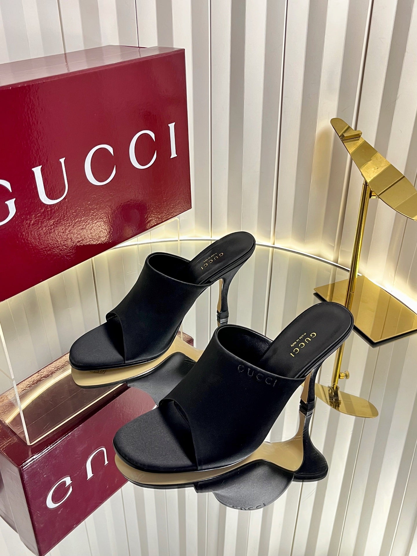 GUCCI 26S HIGH-HEELED SANDALS 100 MM IN BLACK SATIN
