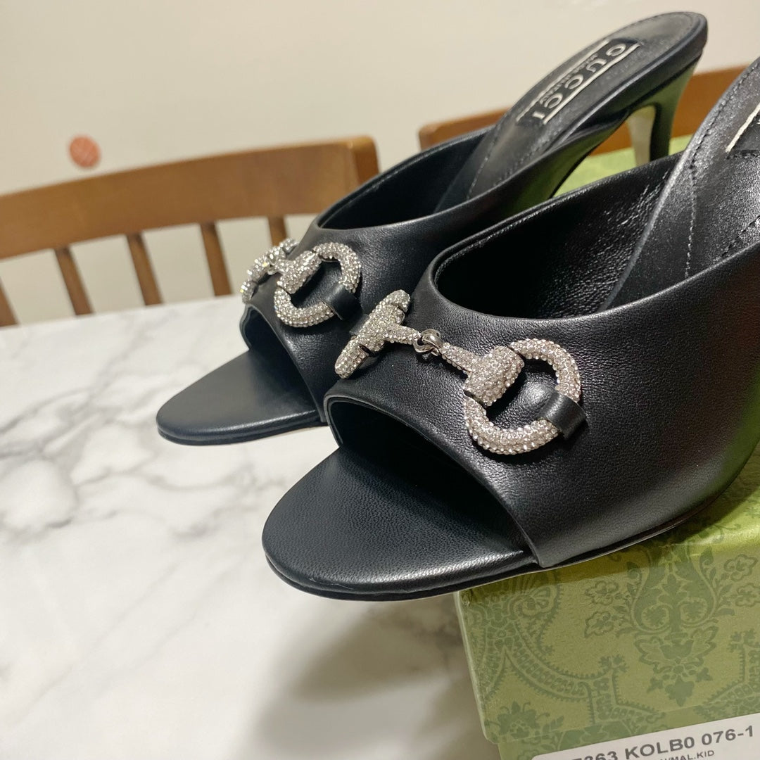 GUCCI 26S HORSEBIT HIGH-HEELED SANDALS 80 MM IN BLACK CALFSKIN