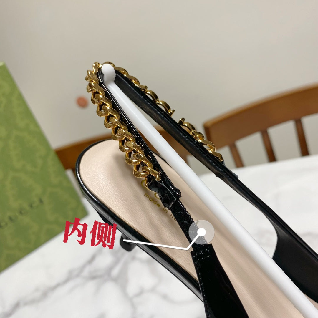 GUCCI 26S SIGNORIA SLINGBACK PUMP 50 MM IN BLACK GLOSSY CALFSKIN