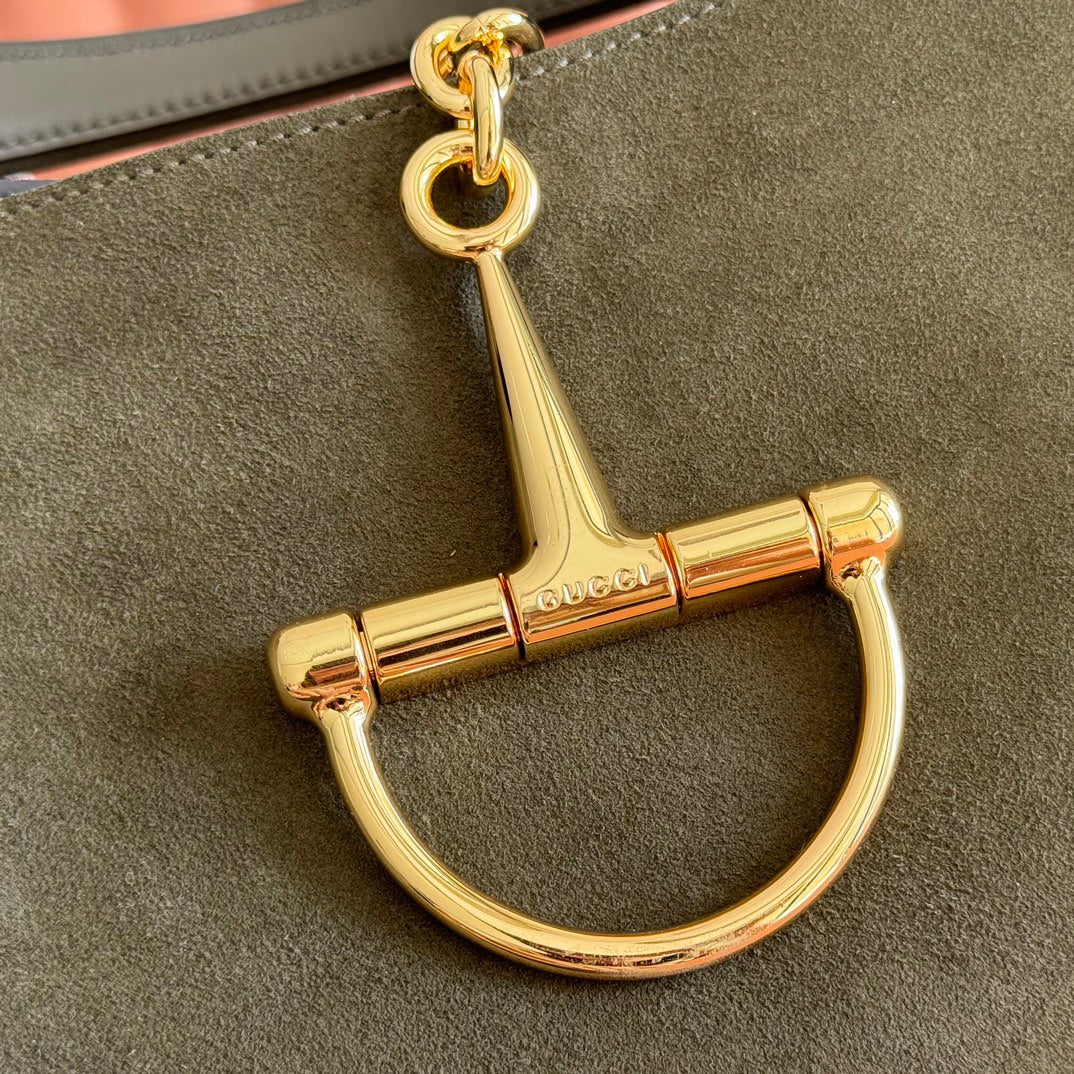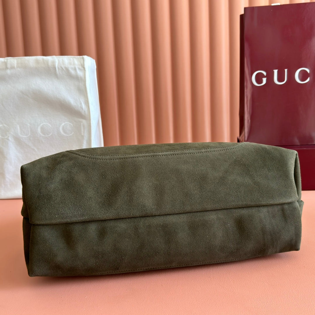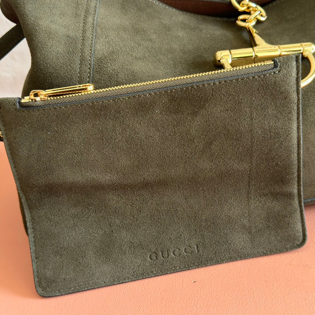 GUCCI 26S SOFTBIT SHOULDER BAG 46 IN DARK OLIVE GREEN SUEDE