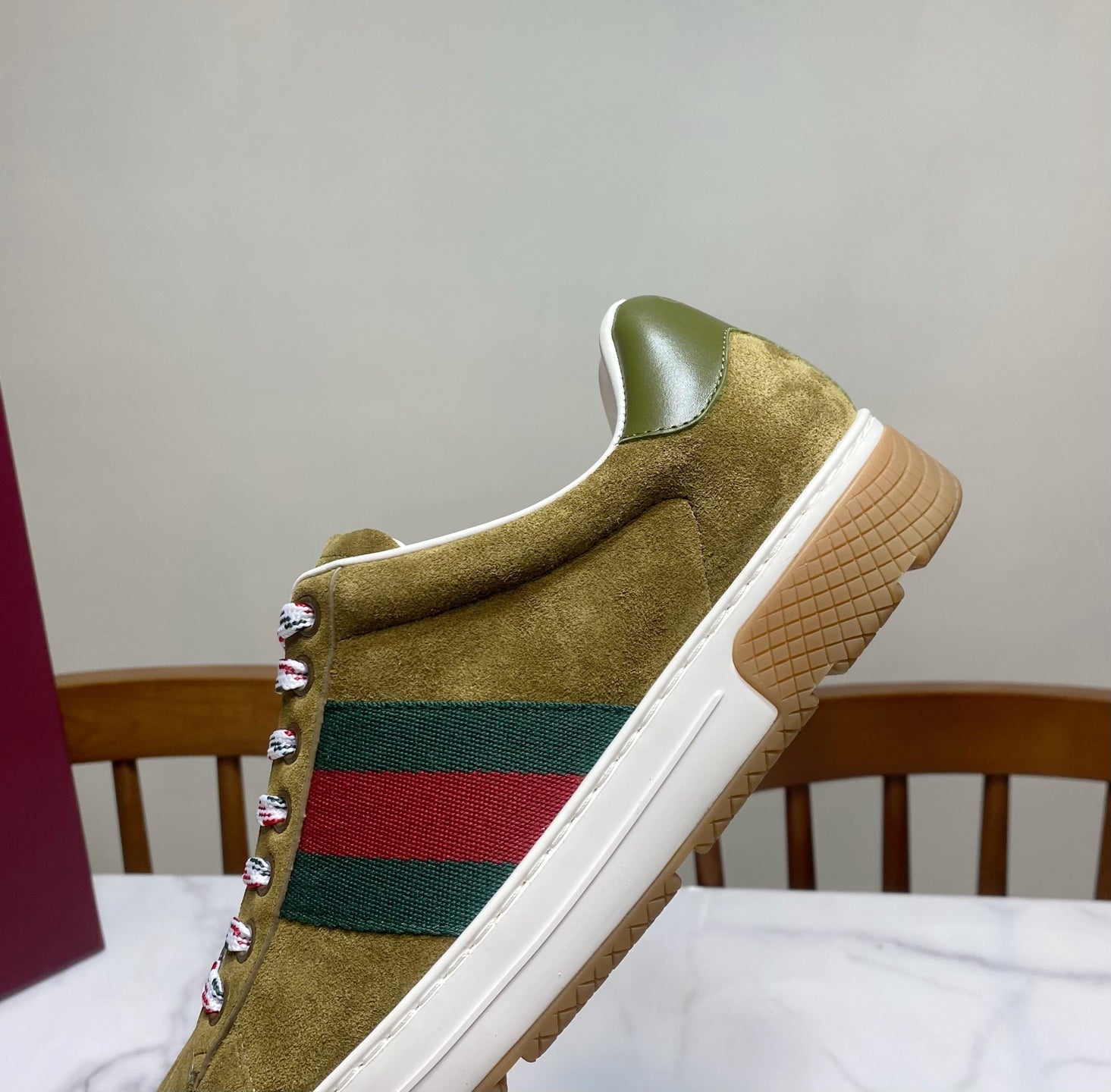 GUCCI 26S SNEAKER IN OLIVE BROWN SUEDE