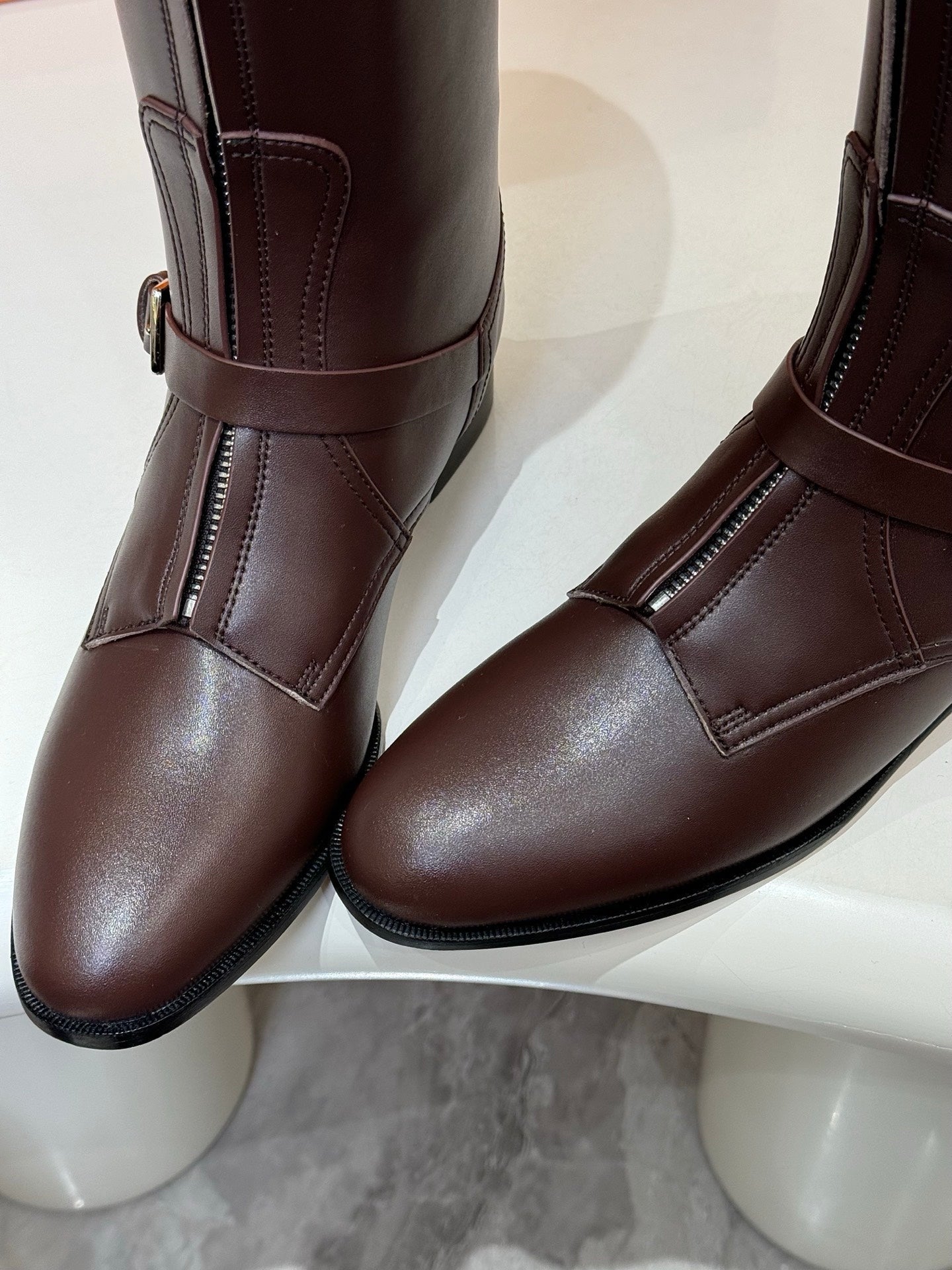 HM 25S RIDING BOOTS IN DARK BROWN LAMBSKIN WITH SILVER HARDWARE