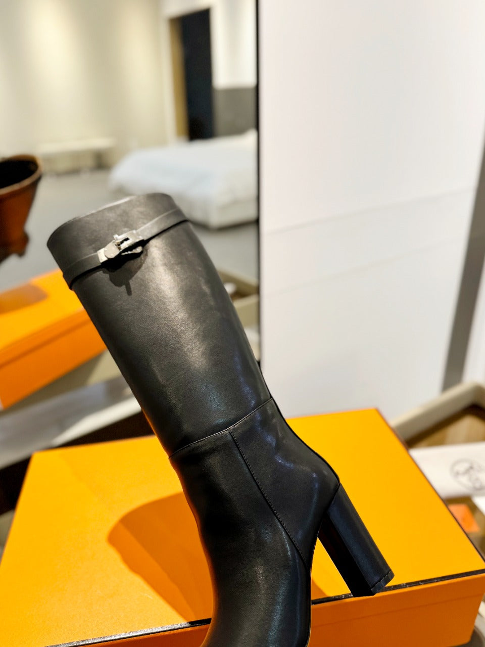 STORY BOOT 85MM IN BLACK CALFSKIN