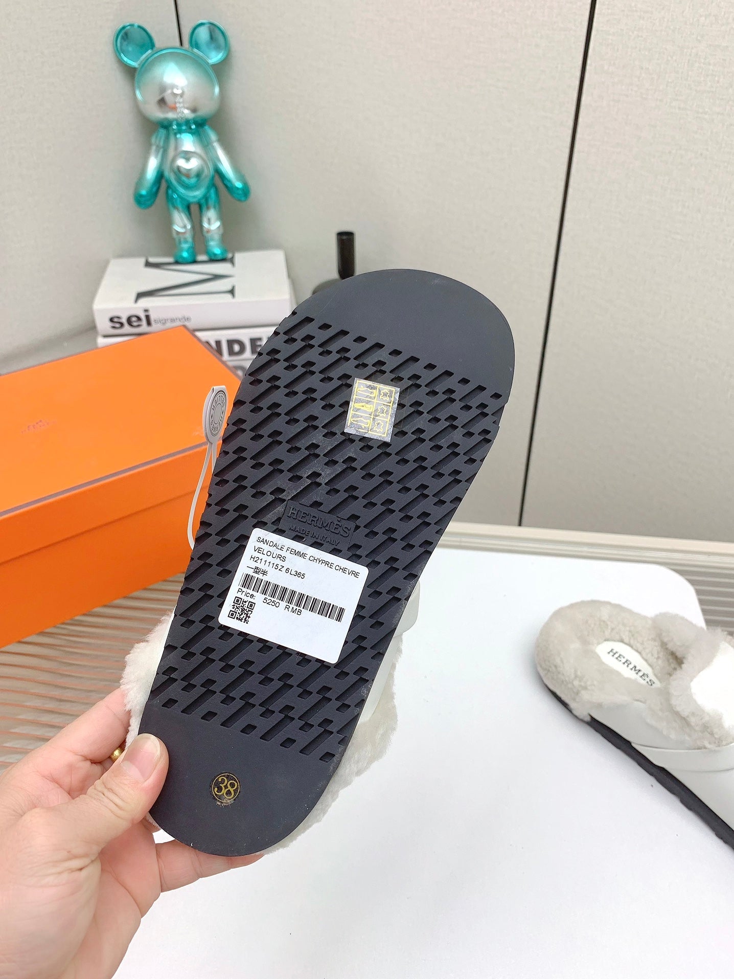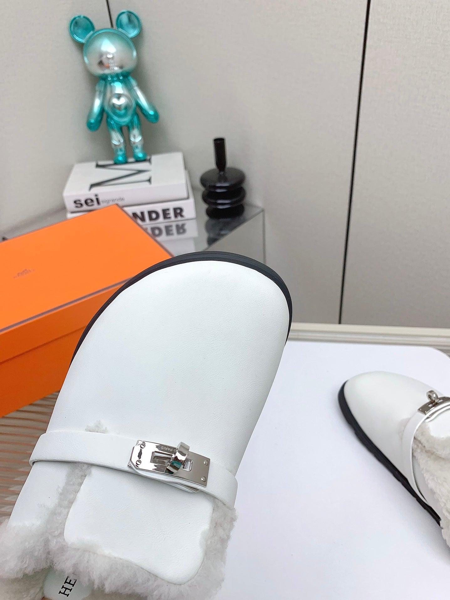 SLIP-ON MULE IN WHITE CALFSKIN AND SHEARLING LINING