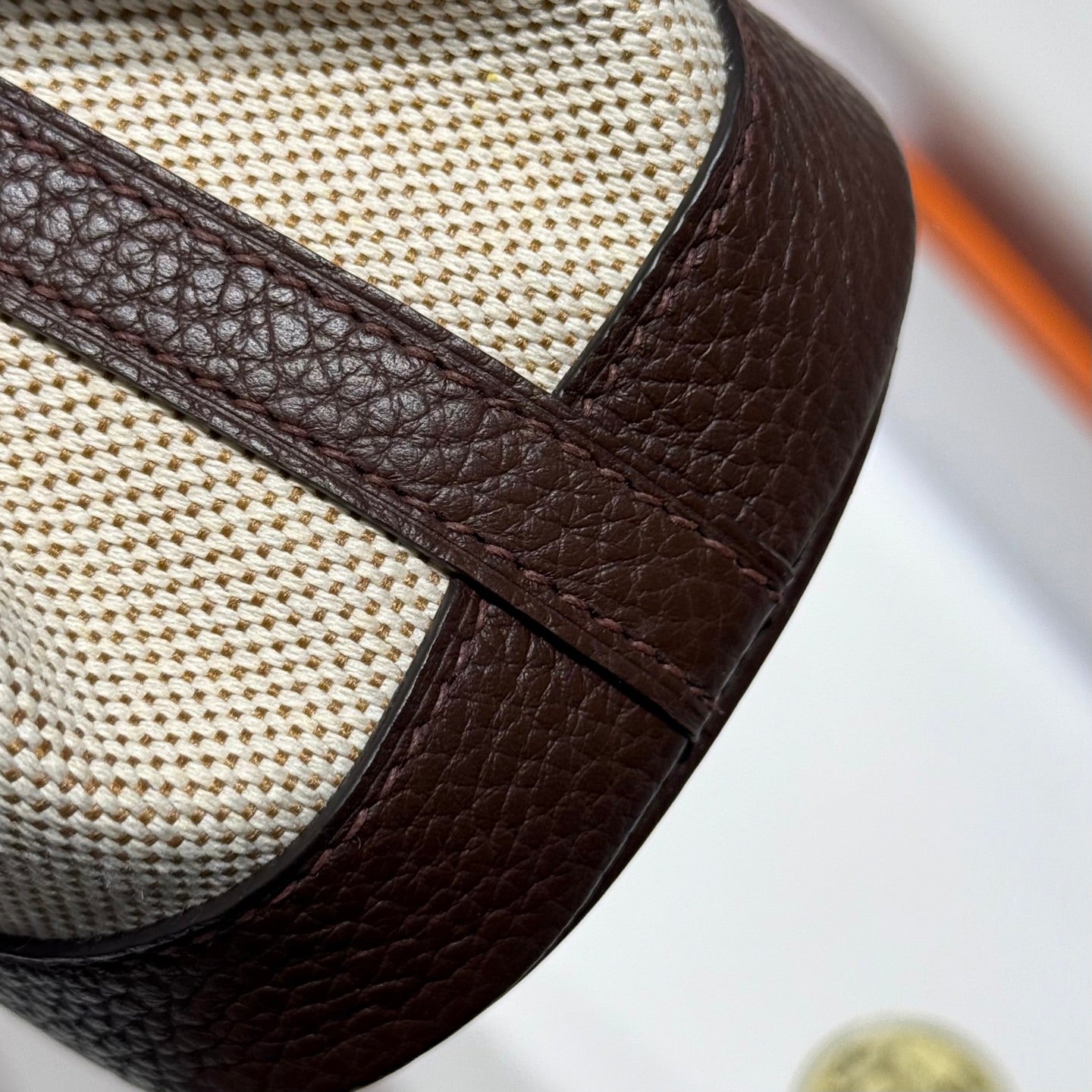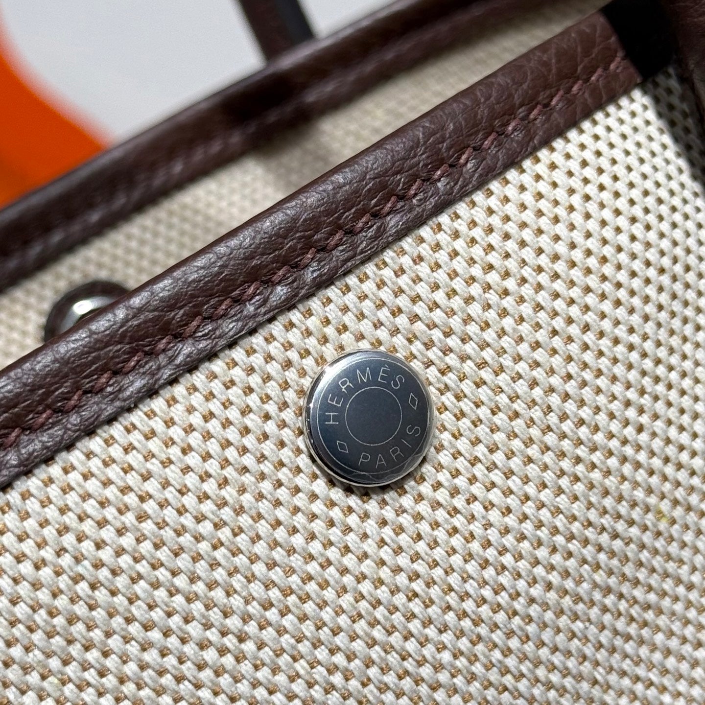 GARDEN PARTY 23CM IN BEIGE TOILETS COTTON CANVAS AND DARK BROWN CALFSKIN