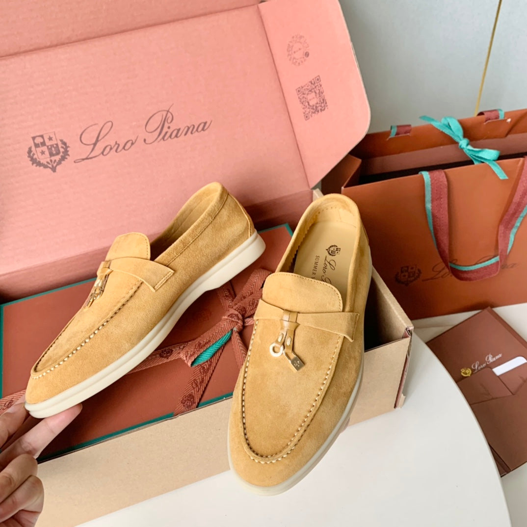 Loro Piana Dark Beige Suede Summer Charms Walk Loafers