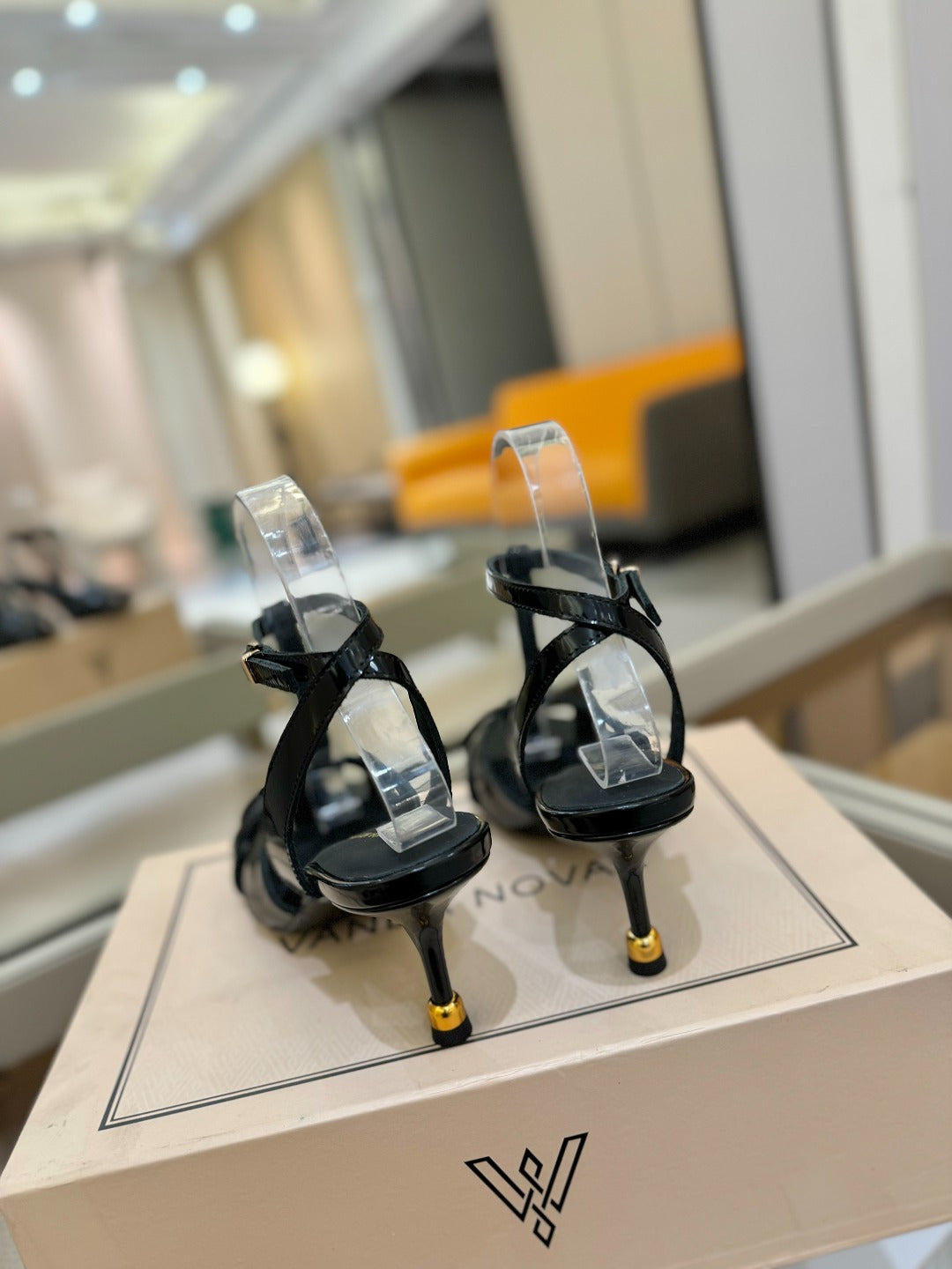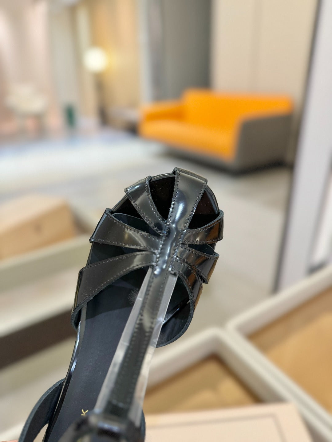 HIGH SANDALS 75 MM IN BLACK PATENT CALFSKIN