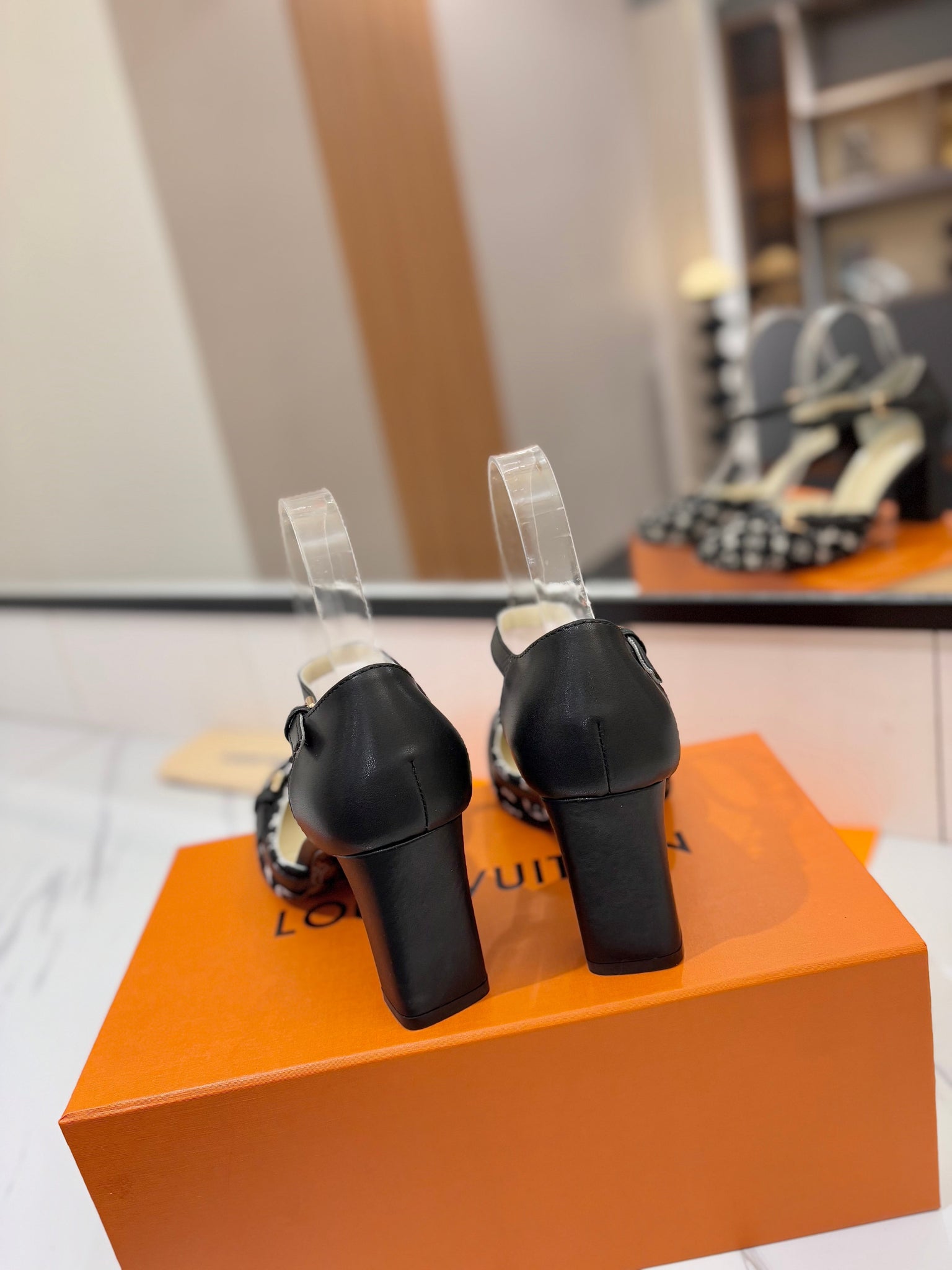 HIGH SANDALS 8 CM IN BLACK MONOGRAM DENIM AND CALFSKIN