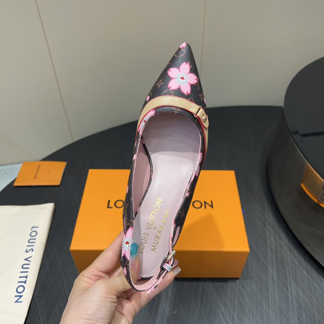 LV HIGH SLINGBACK LOGO PRINT 25S 55 MM IN DARK BROWN CALFSKIN