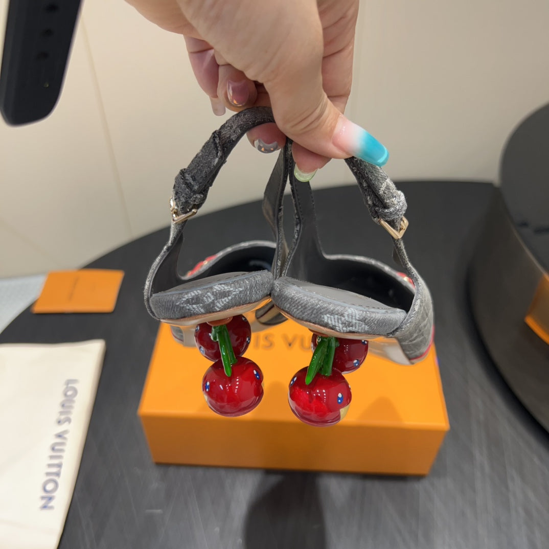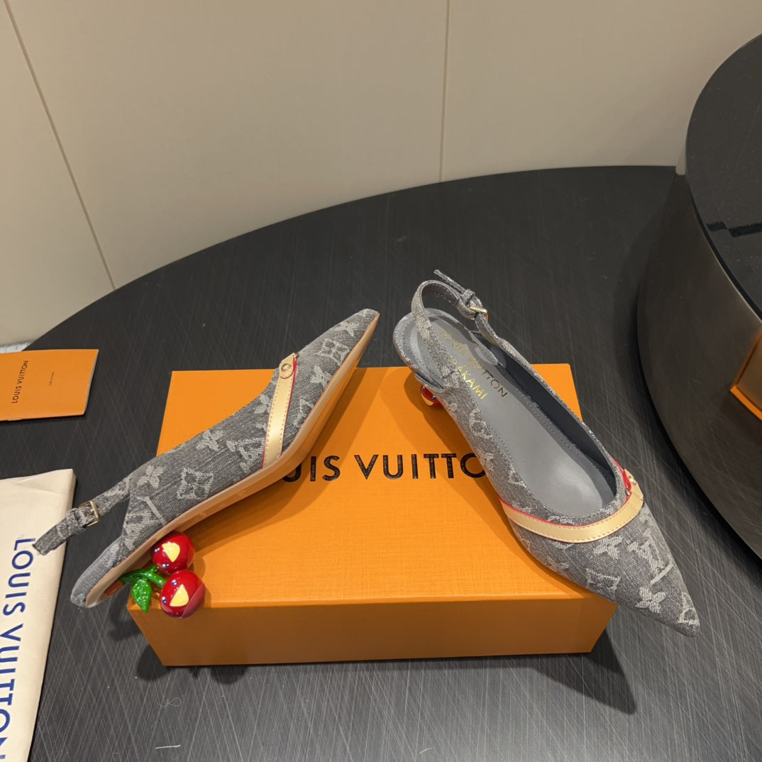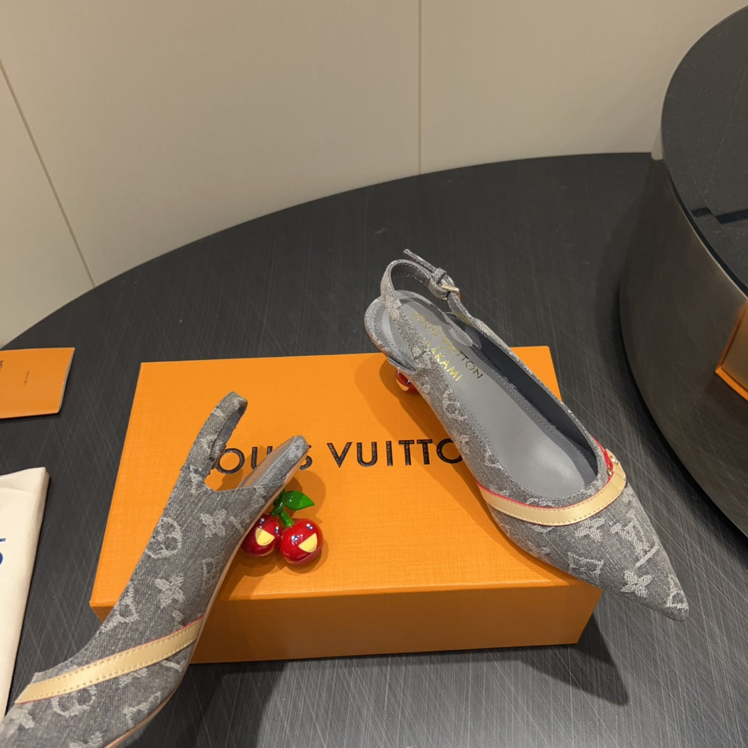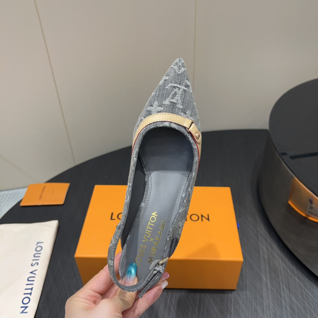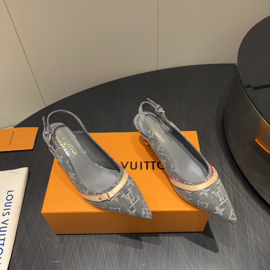 LV HIGH SLINGBACK LOGO PRINT 25S 55MM IN GREY DENIM