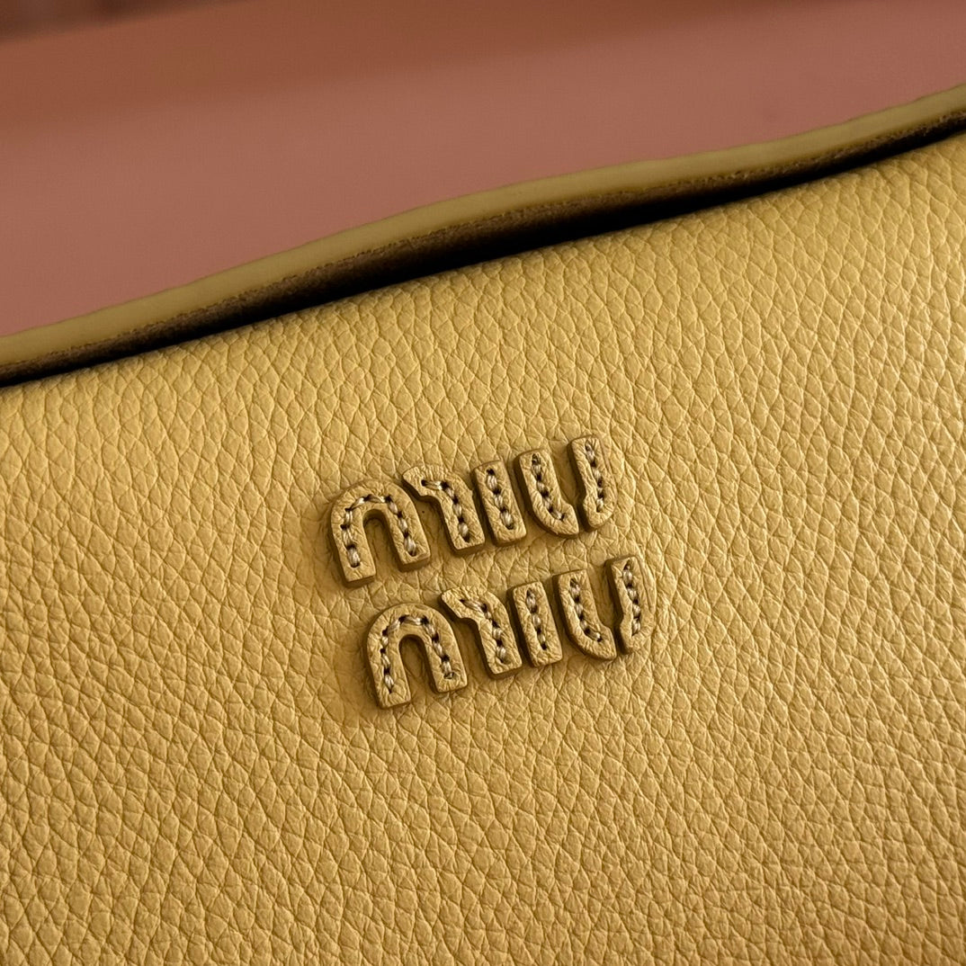 MIUMIU 26S POUCH BAG 18 IN YELLOW CALFSKIN GOLD HARDWARE