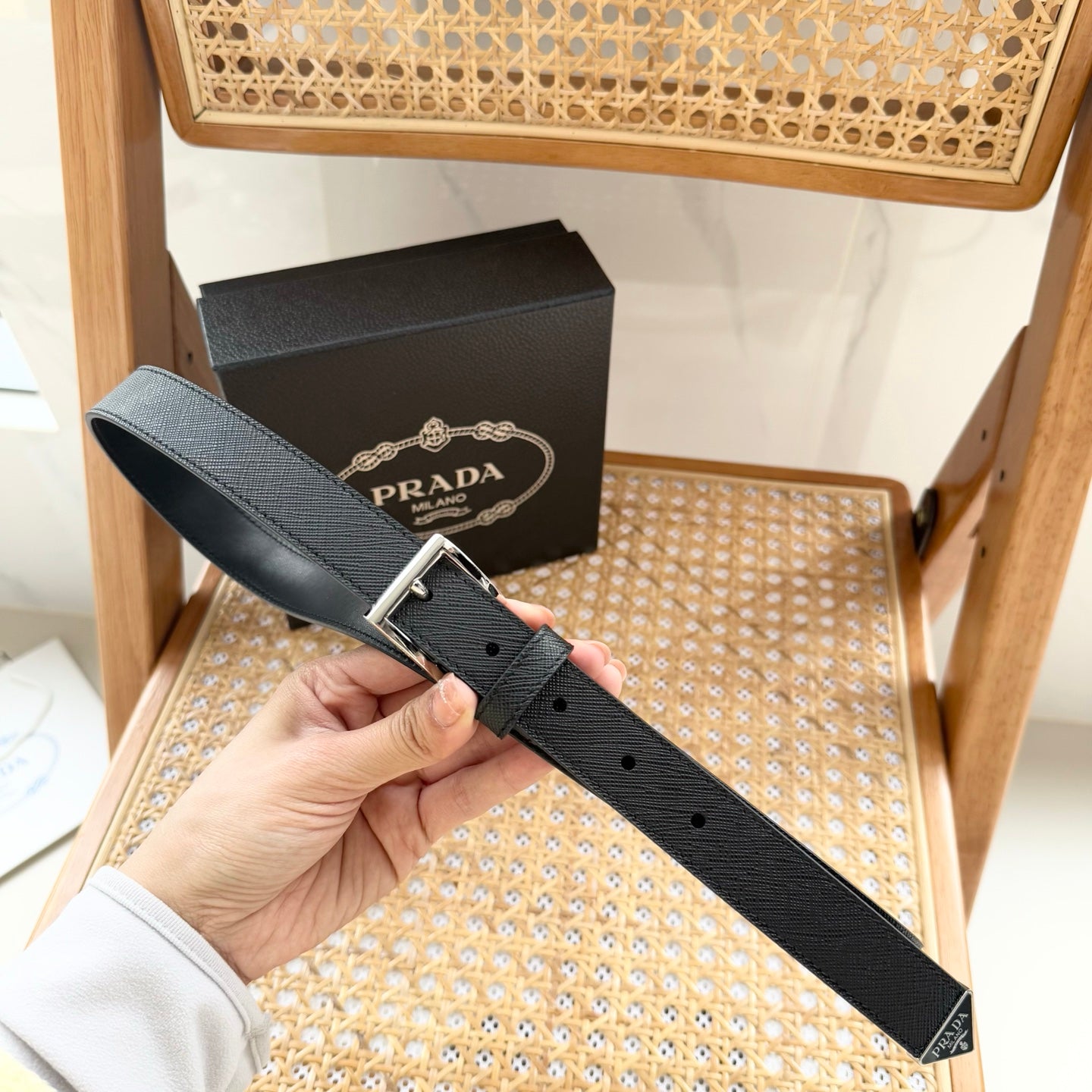 PRADA 25S BELT 25 MM IN BLACK CALFSKIN 542644