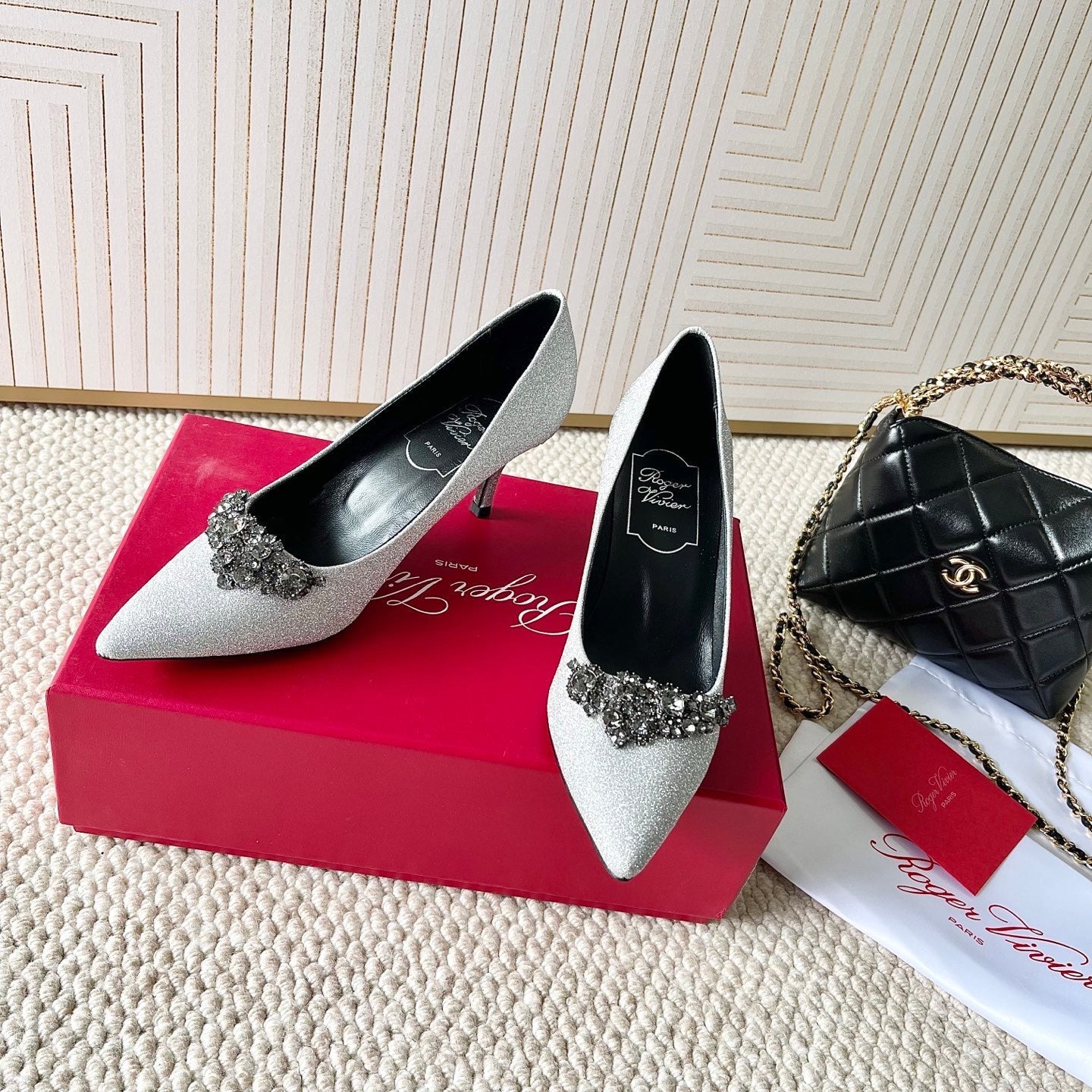 EFFLORESCENCE PUMPS IN SILVER GLITTER FABRIC