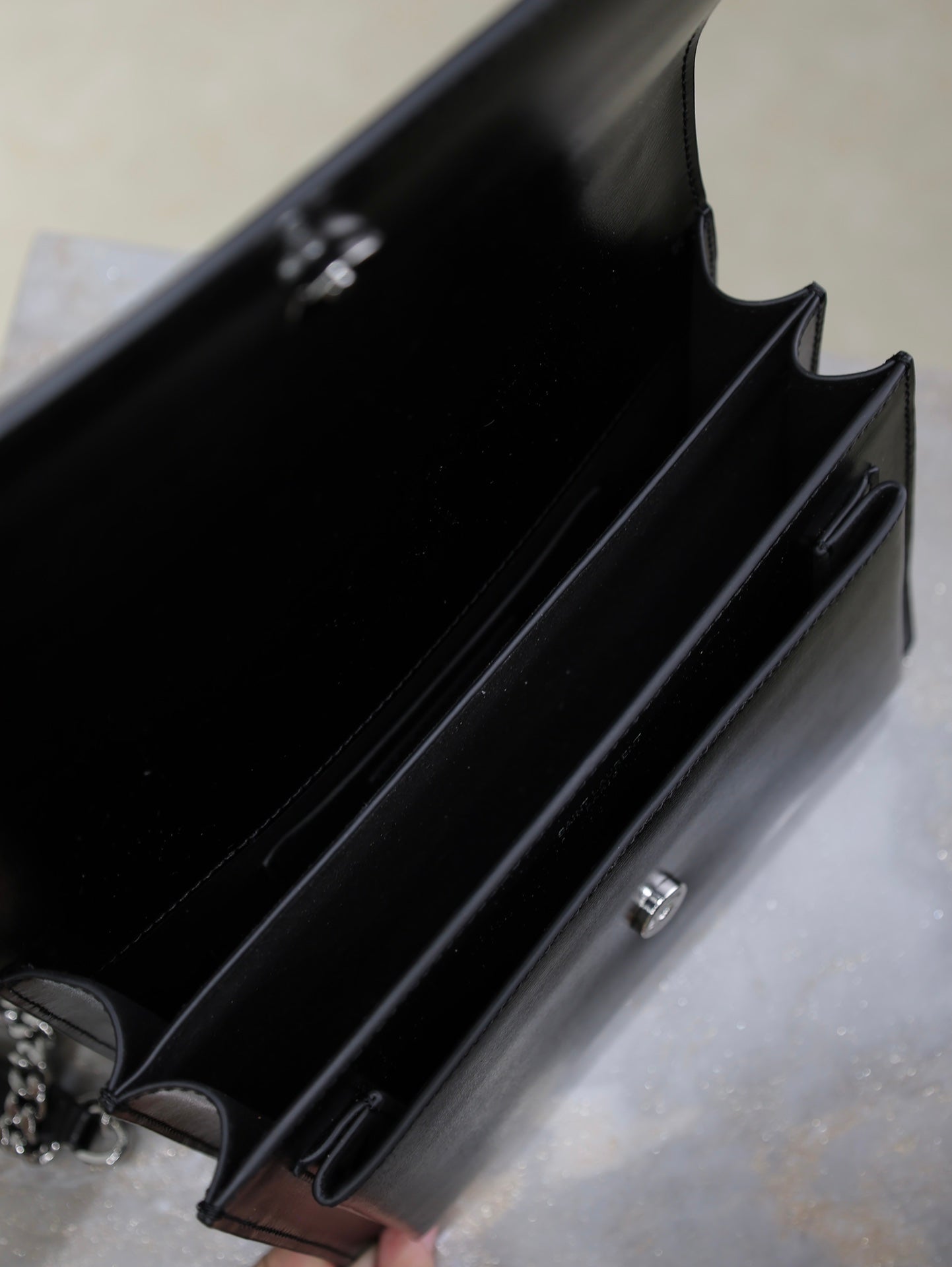 YSL 25S SUNSET BAG 22 IN BLACK CALFSKIN SILVER HARDWARE