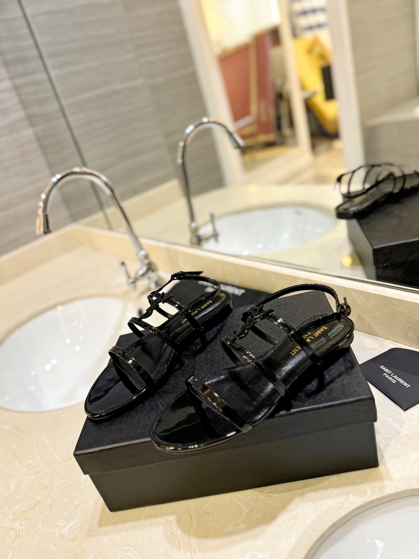 SL CASSANDRA FLAT SANDALS BLACK POLISHED CALFSKIN